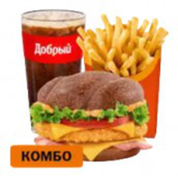 Состав: Большой Комбо состоит из Бургер Арбатский с курицей, Картофеля на выбор и Напитка на выбор. Цена Комбо может меняться в зависимости от комплектации.