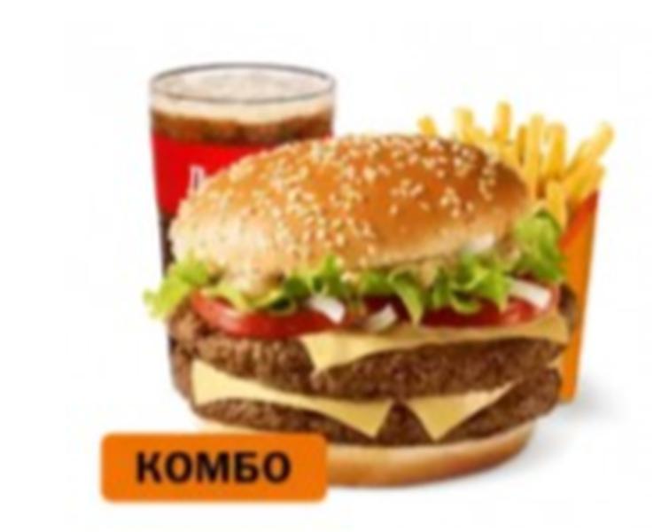 Состав: Большой Комбо состоит из Двойного Биг Спешиал, Картофеля на выбор и Напитка на выбор. Цена Комбо может меняться в зависимости от комплектации.