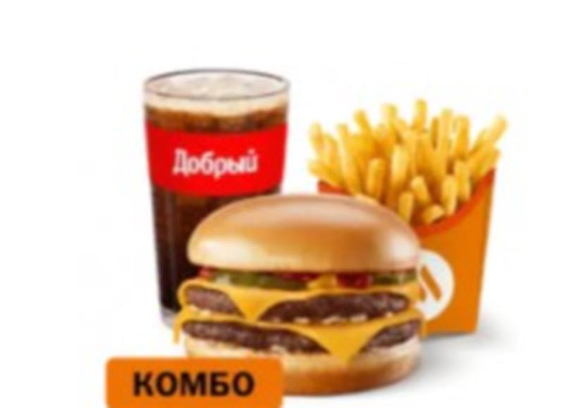 Состав: Большой Комбо состоит из Двойного Чизбургера, Картофеля на выбор и Напитка на выбор. Цена Комбо может меняться в зависимости от комплектации.