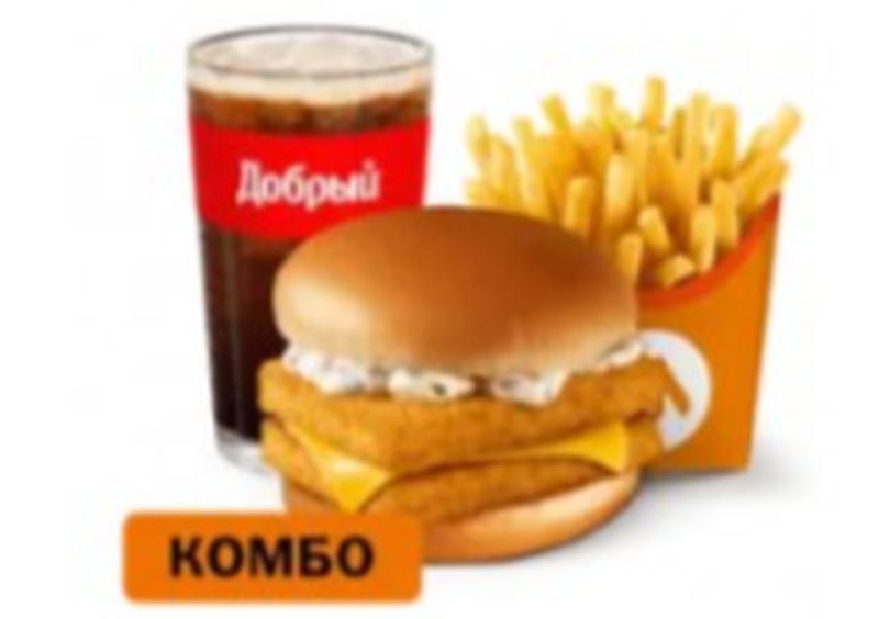 Состав: Большой Комбо состоит из Двойного Фиш Бургера, Картофеля на выбор и Напитка на выбор.Цена Комбо может меняться в зависимости от комплектации.