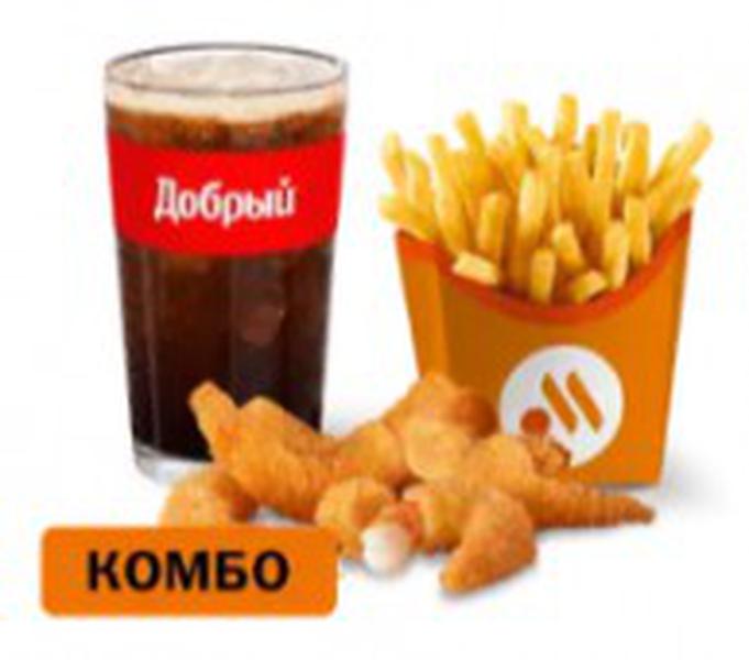 Состав: Большой Комбо состоит из Креветок (6 шт.), Картофеля на выбор и Напитка на выбор. Цена Комбо может меняться в зависимости от комплектации.