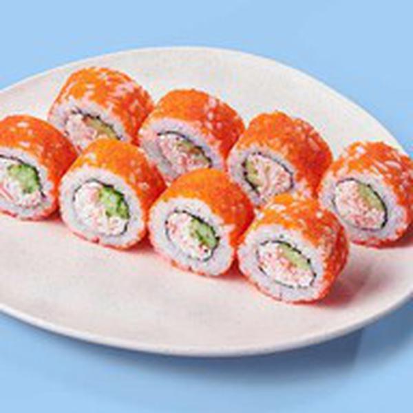 Состав: Крабовые палочки, икра масаго, майонез, огурец, рис (рис, вода, заправка для риса), нори *Не забудьте заказать имбирь, васаби и соевый соус. Они не входят в стоимость заказа.