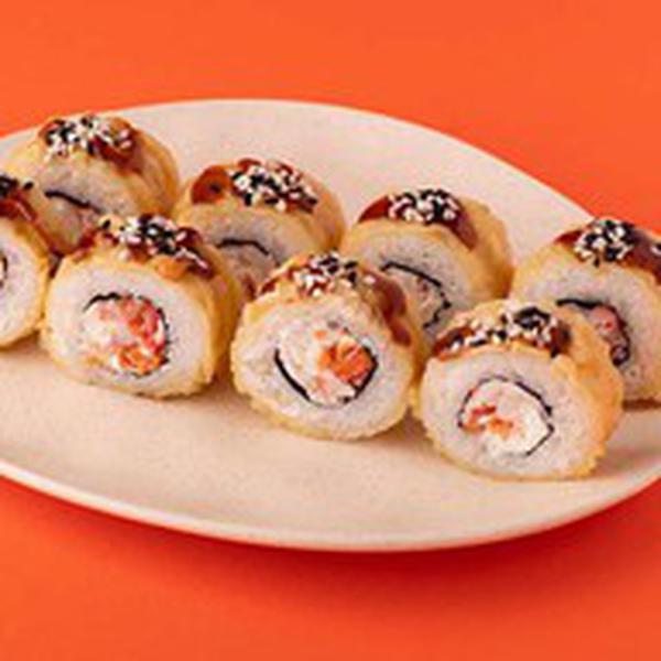 Состав: Лосось, креветка, крабовые палочки, сливочный сыр, унаги соус, темпурный кляр (темпурная мука, вода), кунжут, рис (рис, вода, заправка для риса), нори *Не забудьте заказать имбирь, васаби и соевый соус. Они не входят в стоимость заказа.