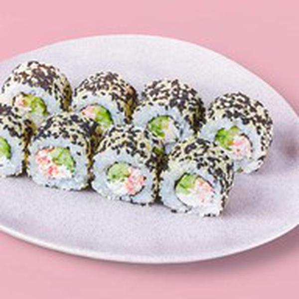 Состав: Крабовые палочки, сливочный сыр, огурец, кунжут, рис (рис, вода, заправка для риса), нори *Не забудьте заказать имбирь, васаби и соевый соус. Они не входят в стоимость заказа.