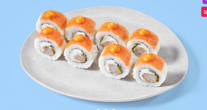 Состав: Сыр сливочный, лосось, креветка в панировке, лук зеленый, соус спайси, рис, нори. *Не забудьте заказать имбирь, васаби и соевый соус. Они не входят в стоимость заказа.