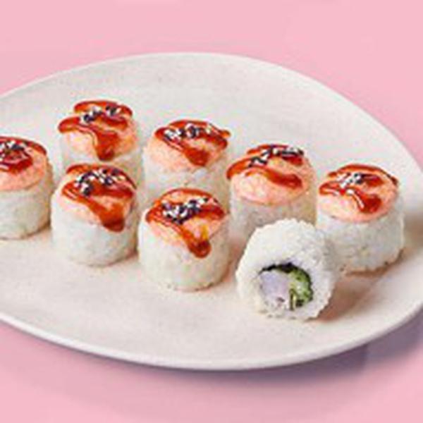 Состав: Креветка, огурец, майонез, фирменный сырный соус (майонез, сыр пармезан, оранжевая икра масаго), унаги соус, кунжут, рис (рис, вода, заправка для риса), нори *Не забудьте заказать имбирь, васаби и соевый соус. Они не входят в стоимость заказа.