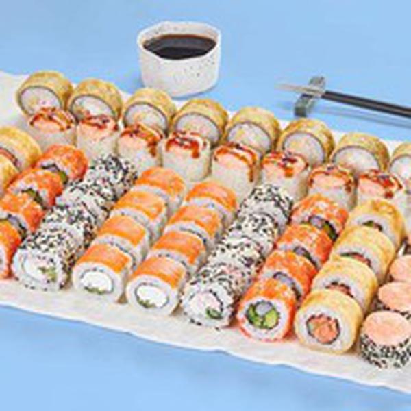 Состав: Ролл Миссури (8 шт.), ролл Филадельфия лайт с огурцом (8 шт.), ролл Калифорния с креветкой (8 шт.), ролл Спешл (8 шт.), ролл Фараон (8 шт.), ролл Дакота (8 шт.), ролл Сицилия (8 шт.) *Не забудьте заказать имбирь, васаби и соевый соус. Они не входят в стоимость заказа. *Внешний вид блюда может отличаться от фото на сайте.
