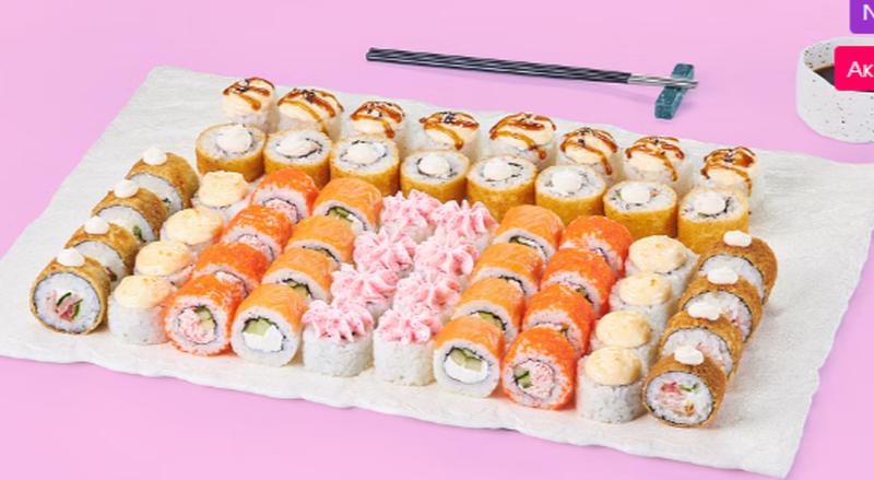 Состав: Филадельфия лайт c огурцом (8 шт.), ролл Калифорния супер лайт (8 шт.), ролл Лава краб (8 шт.), ролл Нежный с курицей (8 шт.), ролл Мацумото (8 шт.), ролл Сакамото (8 шт.), ролл Йоко (8 шт.) *Не забудьте заказать имбирь, васаби и соевый соус. Они не входят в стоимость заказа. *Внешний вид блюда может отличаться от фото на сайте.