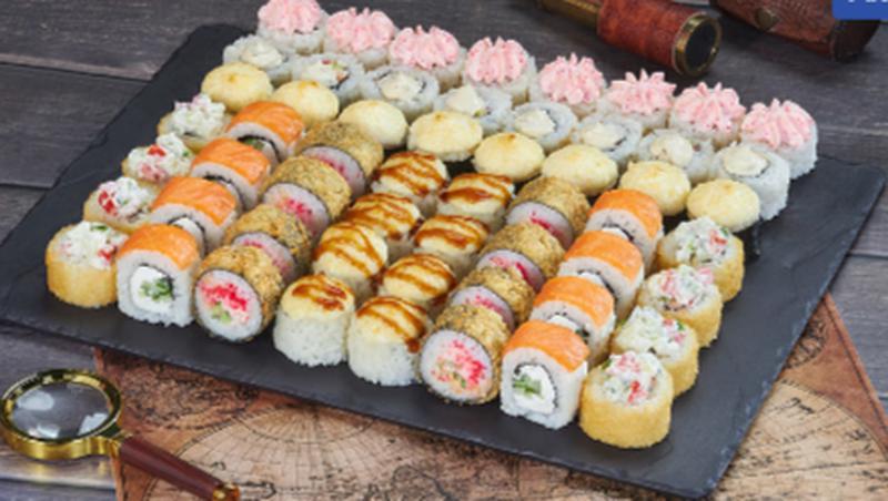 Состав: Ролл Филадельфия Лайт (8 шт.), ролл Кракатау фреш (8 шт.), ролл Кентукки (8 шт.), ролл Египетская курица (8 шт.), ролл Сайтама (8 шт.), ролл Эль Пасо (8 шт.), ролл Калифорния Хот (8 шт.) *Не забудьте заказать имбирь, васаби и соевый соус. Они не входят в стоимость заказа.