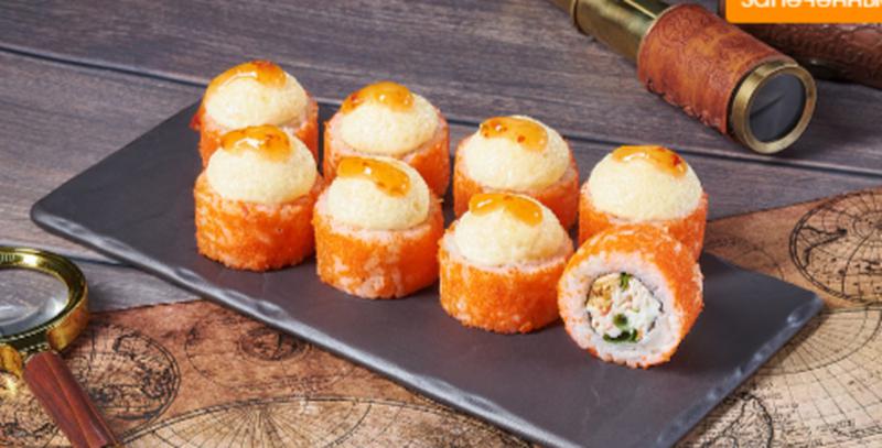 Состав: Лосось терияки, сливочный сыр, зеленый лук, крем краб соус, икра масаго оранжевая, монако соус, сладкий чили соус, рис, нори *Не забудьте заказать имбирь, васаби и соевый соус. Они не входят в стоимость заказа.