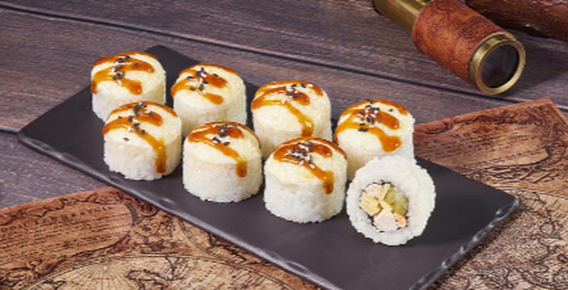 Состав: Курица, огурец, блин тамаго, соус японский майонез, замес монако, соус унаги, кунжут, нори, рис *Не забудьте заказать имбирь, васаби и соевый соус. Они не входят в стоимость заказа.