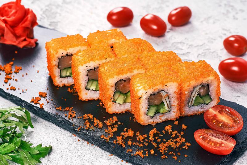 Состав: Лосось, огурец, икра тобико, рис, нори