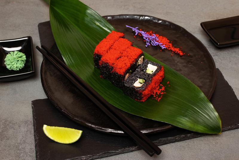Состав: Крабовые палочки, огурец, майонез, икра тобико, рис, нори