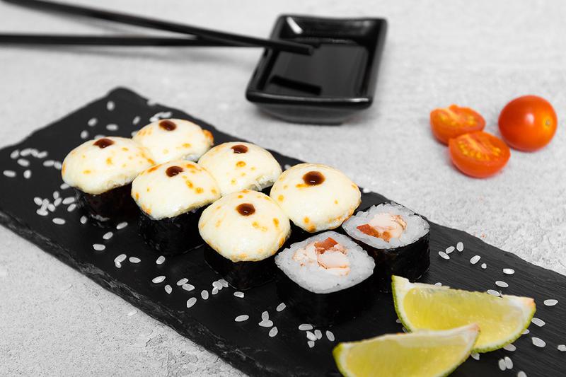Состав: Курица, помидор, сыр моцарелла, майонез, соус кабаяки, нори, рис
