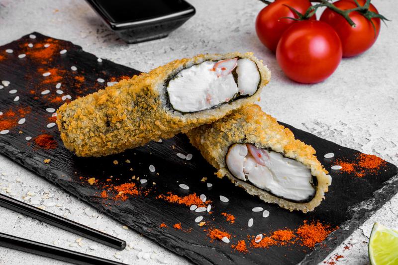 Состав: Креветка, сыр творожный, нори, соус кабаяки.