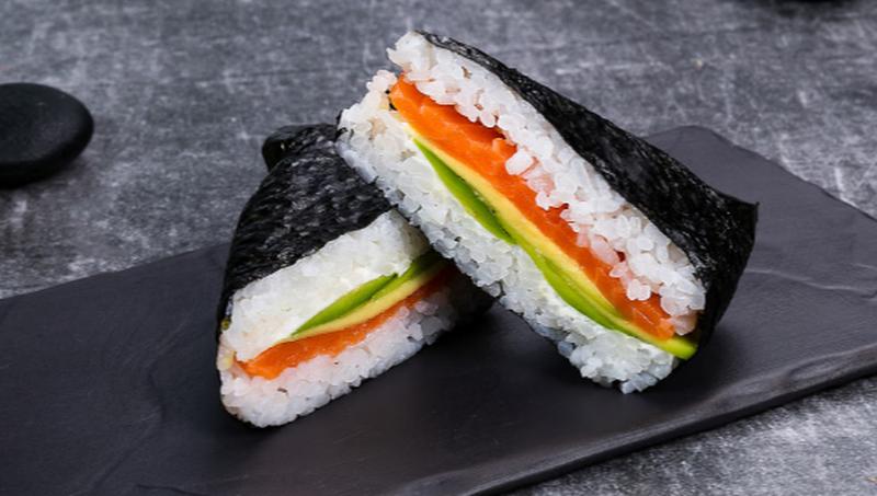 Состав: Сливочный сыр, лосось, авокадо, нори, рис