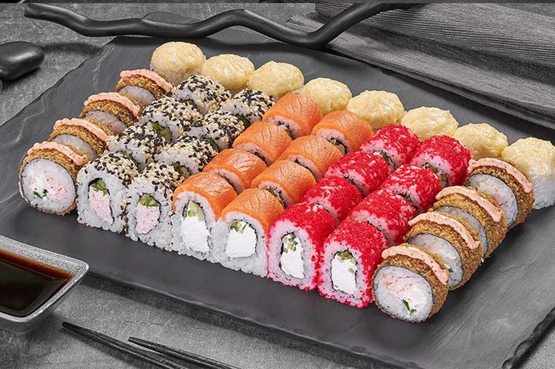 Состав: Ролл Краб фри темпура (8 шт.), ролл Калифорния в кунжуте (8 шт.), Цезарь ролл запеченный (8 шт.), ролл Филадельфия лайт сяке (8 шт.), ролл Калифорния классика (8 шт.) *Внешний вид блюда может отличаться от фото на сайте