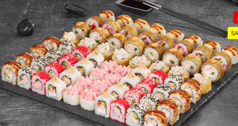 Состав: Ролл Чикен Дон (8 шт), ролл Лава с крабом (8 шт), ролл Куритос (8 шт), ролл Калифорния классика (8 шт), ролл Калифорния в кунжуте (8 шт), ролл Краб фри темпура (8 шт), ролл Оливье темпура (8 шт), ролл Калифорния темпура (8 шт), ролл Мистер крабс запеченный (8 шт) *Внешний вид блюда может отличаться от фото на сайте