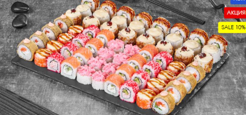 Состав: Ролл Филадельфия лайт сяке (8 шт), Ролл Лава с лососем (8 шт), Ролл Калифорния классика (8 шт), Ролл Чикен дон (8 шт), Ролл Лосось фри темпура (8 шт), Цезарь ролл запеченный (8 шт), Ролл Чикен фри хот запеченный (8 шт), Ролл Флешбек запеченный (8 шт). *Внешний вид блюда может отличаться от фото на сайте.